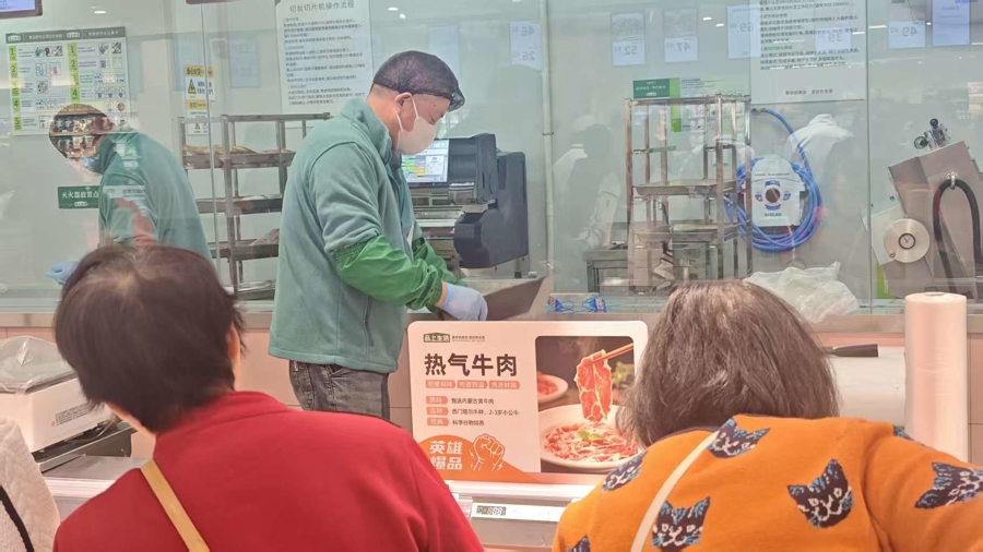 此外,猪肉、牛肉等红肉类,清美也有自己独特的供应链。最近进入深秋,不少老百姓家中开始煮起了暖暖的火锅,清美从贵州山区引进的黄牛肉恰逢其时,消费者不仅可以选部位,还可以现场切片,在家实现“牛肉火锅自由”。